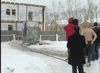 группа трудилась в здании. Другая на улице. Постановочные съемки